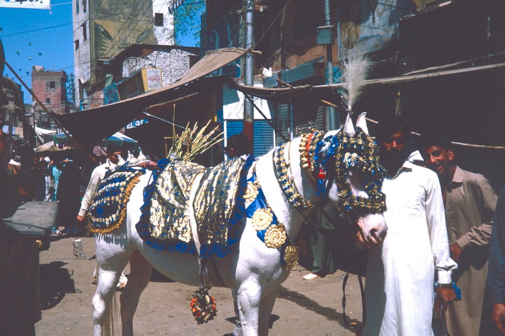 Karachi is a sprawling pretty new place – wide dual carriageways, many trees and shrubs and plants everywhere – rather reminds me of parts of Cairo. The trade is arranged in areas so that you have. for example, all electrical household items together then you move onto motor spares, cloth, curios and so on – very oriental. …Not really so much rush and pressure as in India but nevertheless quite crowded. Both men and women wear baggy trousers ending in a stiff cuff, and a loose long shirt with split side seems over.