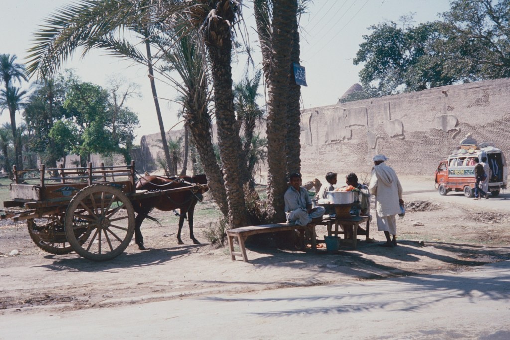 On Good Friday she took the Awami Express. ”Pakistani 1st Class is more like Indian 2nd, only there isn’t the provision to lie down on 3-tiers…so I was faced with the prospect of sitting upright for the whole journey of 21+ hours [she was 66, just about my age as I write this and I would not have been happy]. Her neighbours were an elderly bearded father with two sons, a ‘tidy and intelligent-looking young man reading textbooks, and Mr Latif, an ex-naval officer, who helped her order lunch from the dining car and amused her with endless chat of life on the high seas – he was tickled that she too had been in the Navy – and helped her twist a piece of cloth round her head to keep out the dust – ‘looking like nothing on earth, I noticed when I went to the latrine’. Every two hours he unrolled his prayer mat to pray – he had specially travelled on the train so he could do so; one or two people asked him to lend it to them which he did. ‘ He was extremely generous is supplying me with a stream of refreshments: cups of tea, fruit – guavas sliced and sprinkled with chilli and salt, bananas, tangerines; a sweet in a piece of newspaper made of milk. But he didn’t take very much from me, we shared a soft drink and had to be persuaded hard to take fruit.