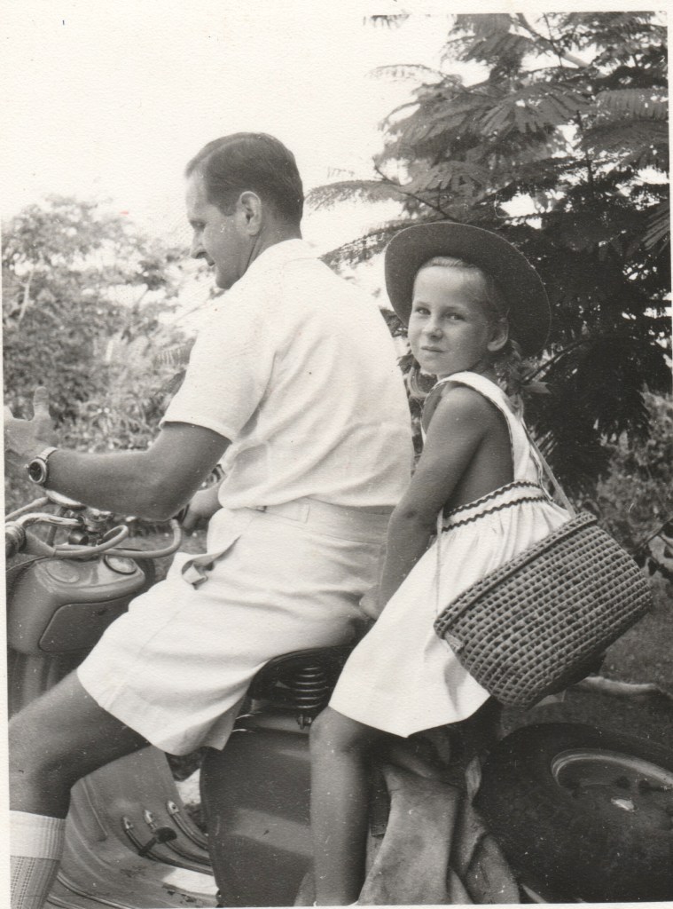 In June 1963 President Houphouët Boigny of the Ivory Coast made a State Visit, and they went to the parade ground ‘in full fig’ . My father here in white suit just behind the two presidents, in his role as acting Permanent Secretary of Foreign Affairs. I even found a link to a Tik Tok video taken on that day and can see Dad in the background!