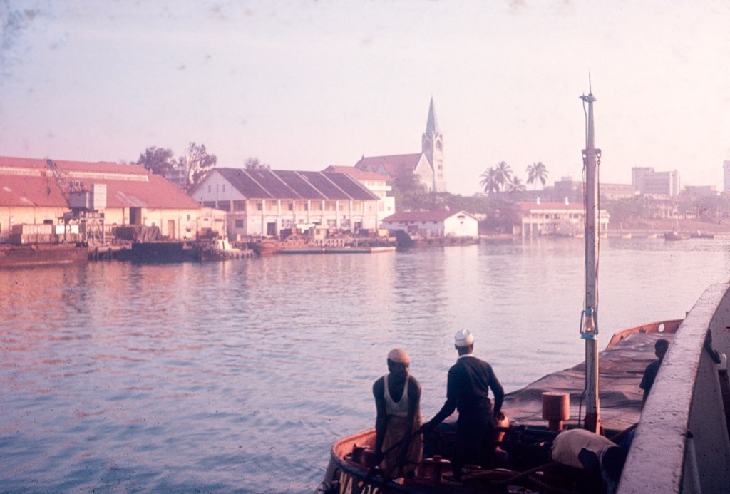 We passed the day rather idly doing a jigsaws, phoning for news, helping with food preparation, just resting. Vicky appeared to be be feeling better but obviously had a bad throat [tonsillitis]. At lunchtime the radio came on for the first time the local station and we heard Mr Kambona [PM] in English and Swahili. We were constantly watching out for the arrival of the frigate Rhyl [hot from Zanzibar where she had been sent to help out in the Revolution; I had some photos of us watching her arrival from Msasani but I think they are now in the Unwin collection in the Bodleian Library]. During the day we heard that Pat Douglas and the majors had all managed to either escape or avoid arrest and had gone to the British High Commission.