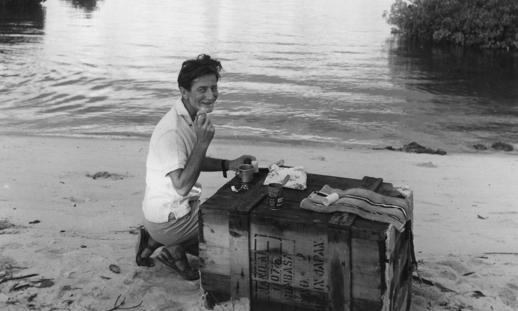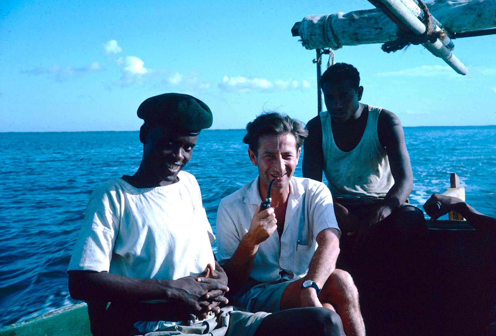 Travelling to Pate by boat from Lamu with Neville, and shaving on the beach on Manda Toto