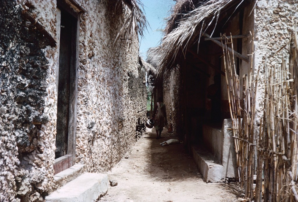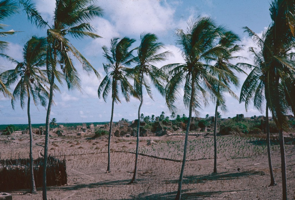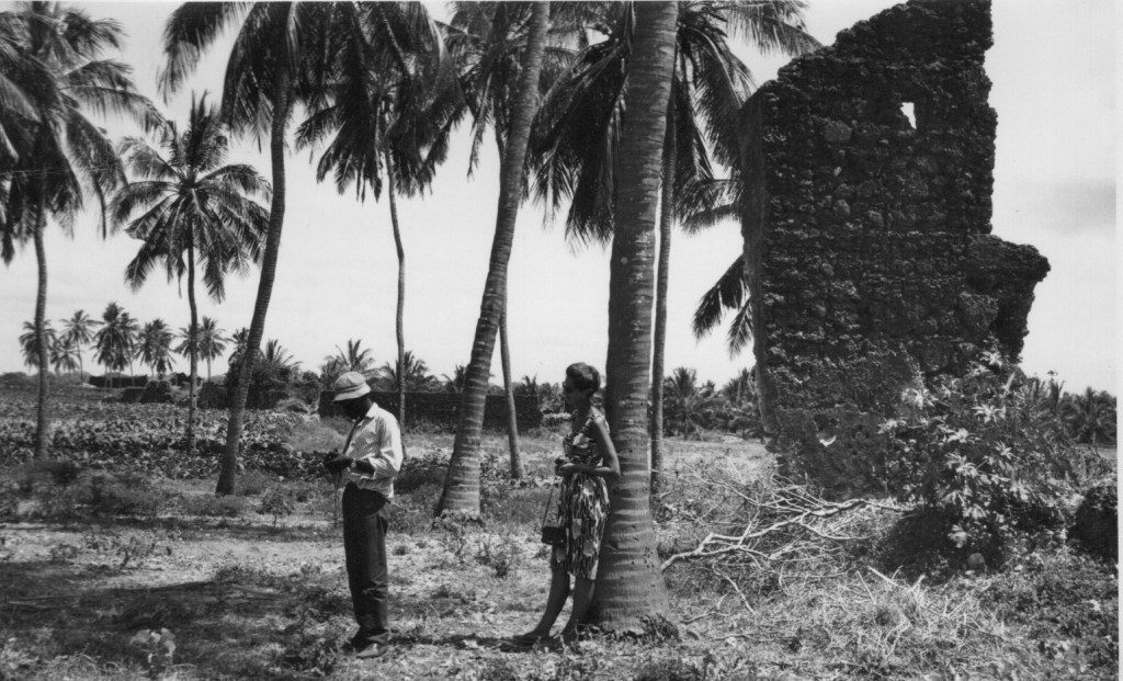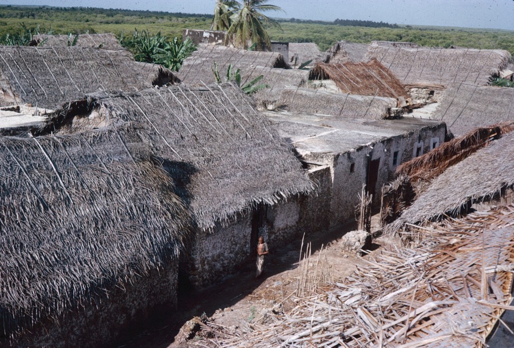 The first and only reference I can find in Mum’s letters to Pate was in October 1966. She describes camping on the beach but they were bitten to death by sandflies and mosquitos and had to move to a rooftop. This was after she had been camping on Manda Toto, when she was helping Neville excavate the ruins in Manda (see Manda pages) before coming to Pate.