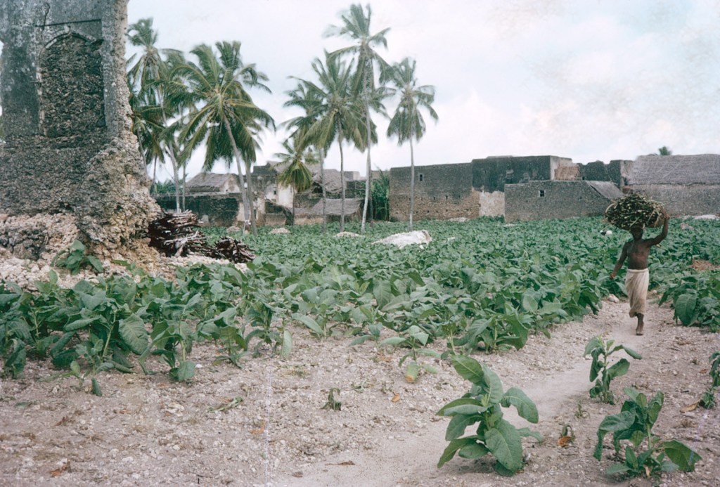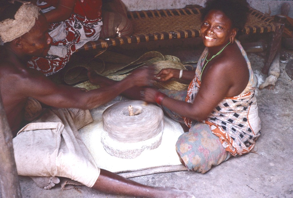 By 6.10 I washed after fashion, dressed and packed up – no boy with the donkey to take my bag had turned up so Nana who, rather surprisingly, had awoken and was showing concern took me over to Esta‘s house to see what was happening. No one up there so we sat outside the neighbour’s house to see if he turned up. The neighbour turned out to be an agricultural advisor from Thika stationed at Pate and we talked about education and he told me out of 300 children only 30 to go to school. Pate needed educated people to broaden its view and replace people like himself from up-country. We also discussed wango an ingredient of halwa, which is a tuberous-rooted wild plant and he said he would bring a plant to allow me to show me if I stayed on long enough.