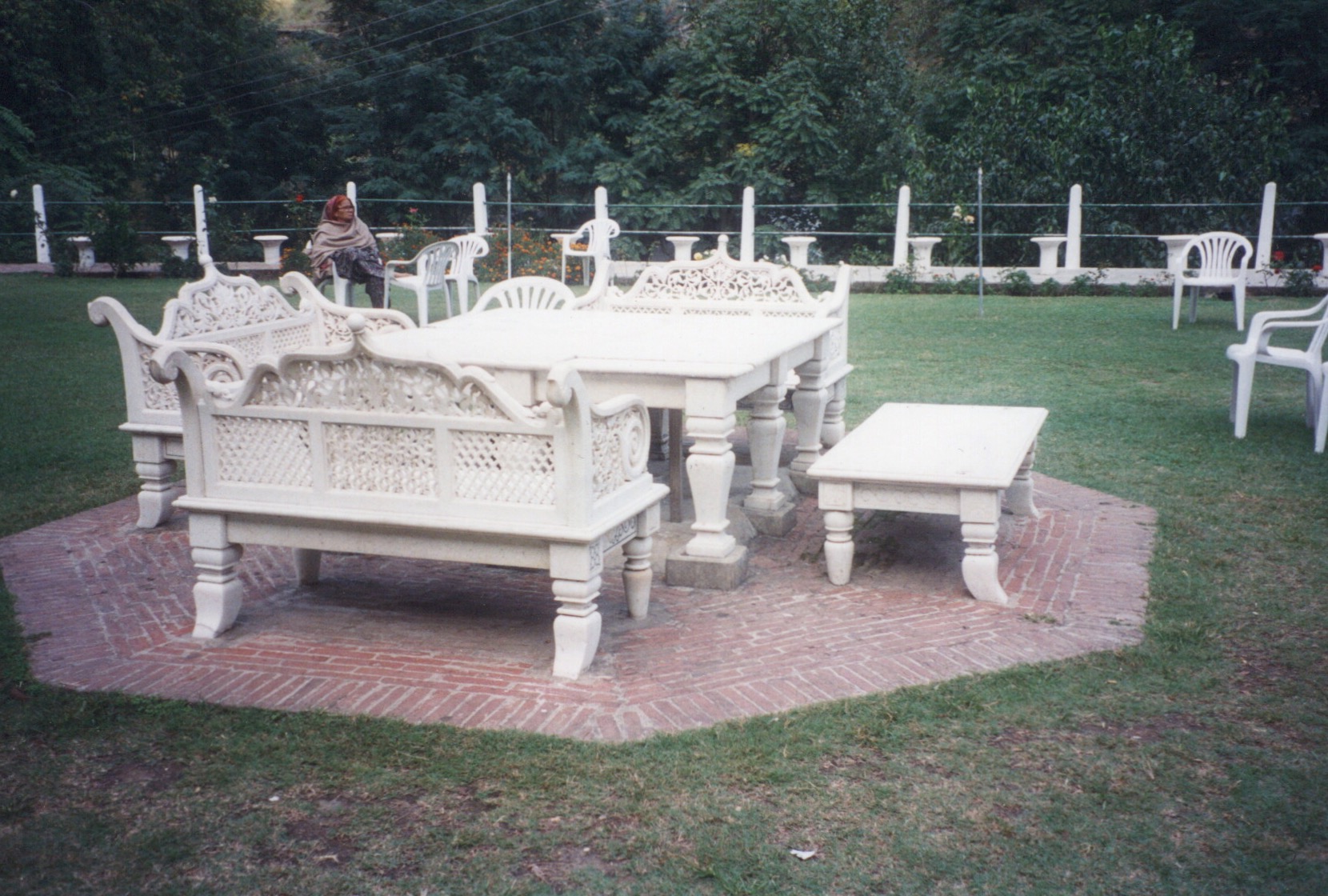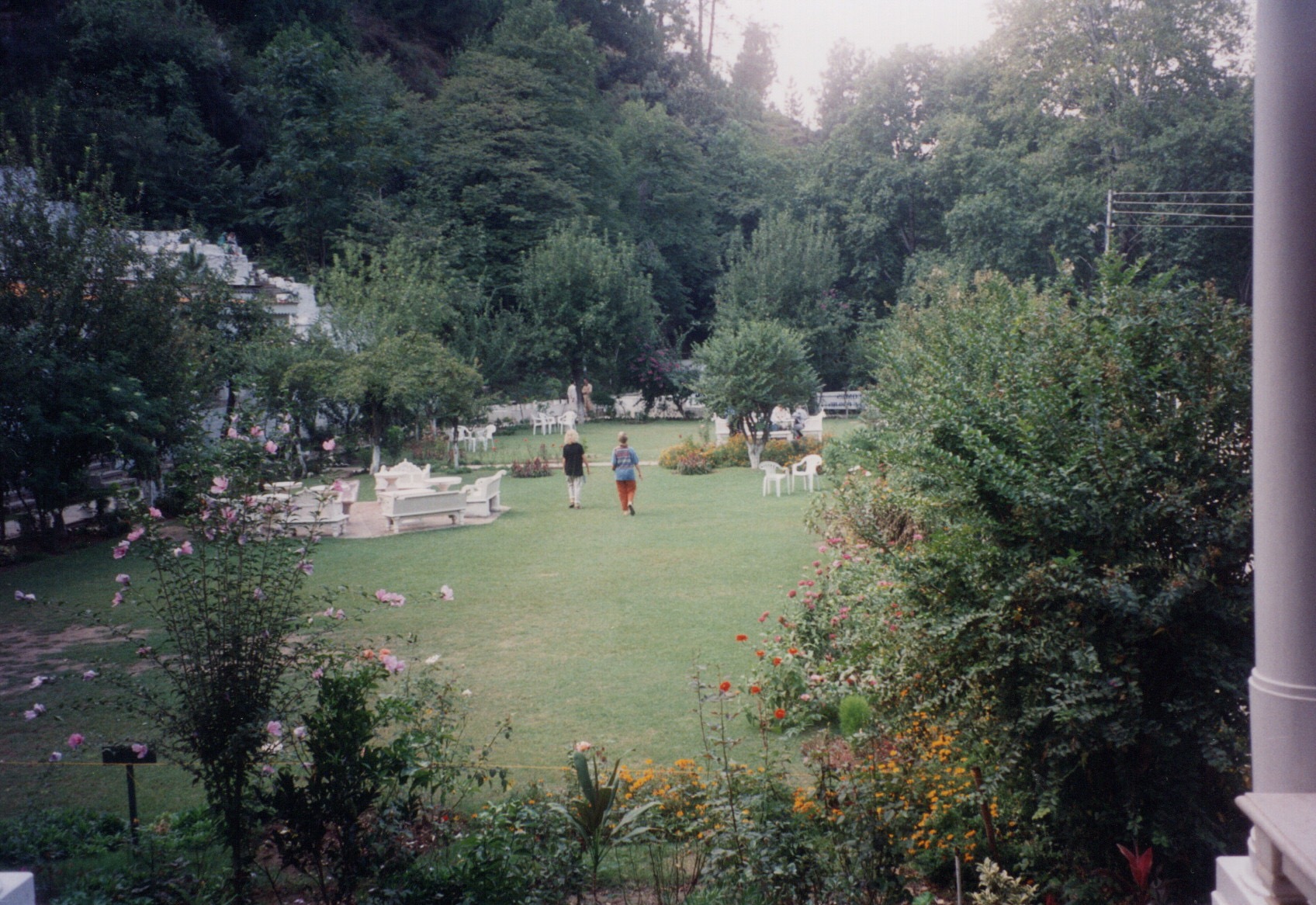 until they reached the Serena Hotel in the palace of the late Wali of Swat, with its ‘beautifully clipped lawns and hedges and immaculately clean and polished rooms’. (below the gardens).