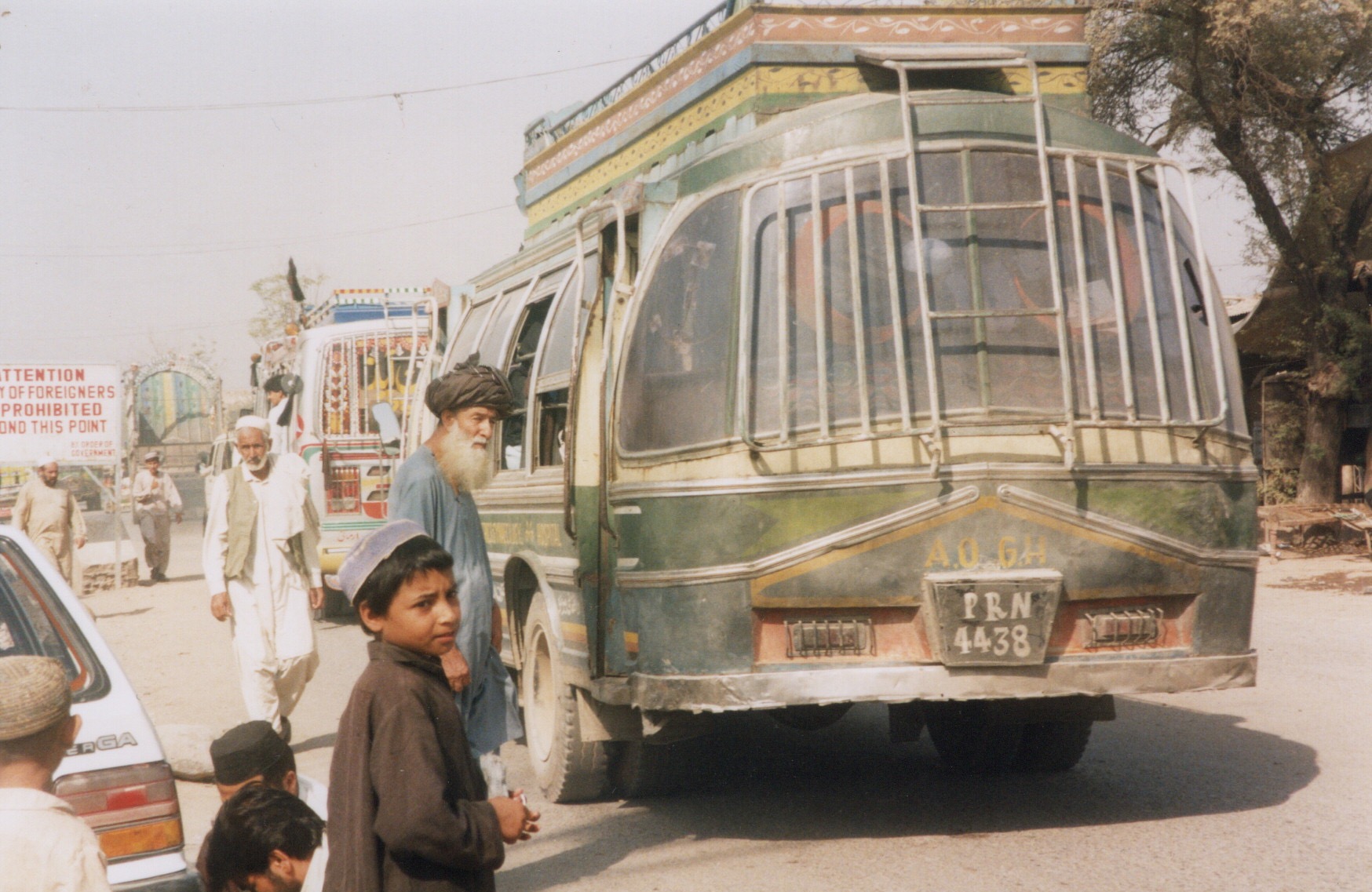 They set off from Islamabad with the intention of visiting the Khyber Pass, but were thwarted because of the war. Nevertheless they saw the ‘high colourful lorries and buses choc-a-bloc with passengers and luggage heading for Afghanistan’.