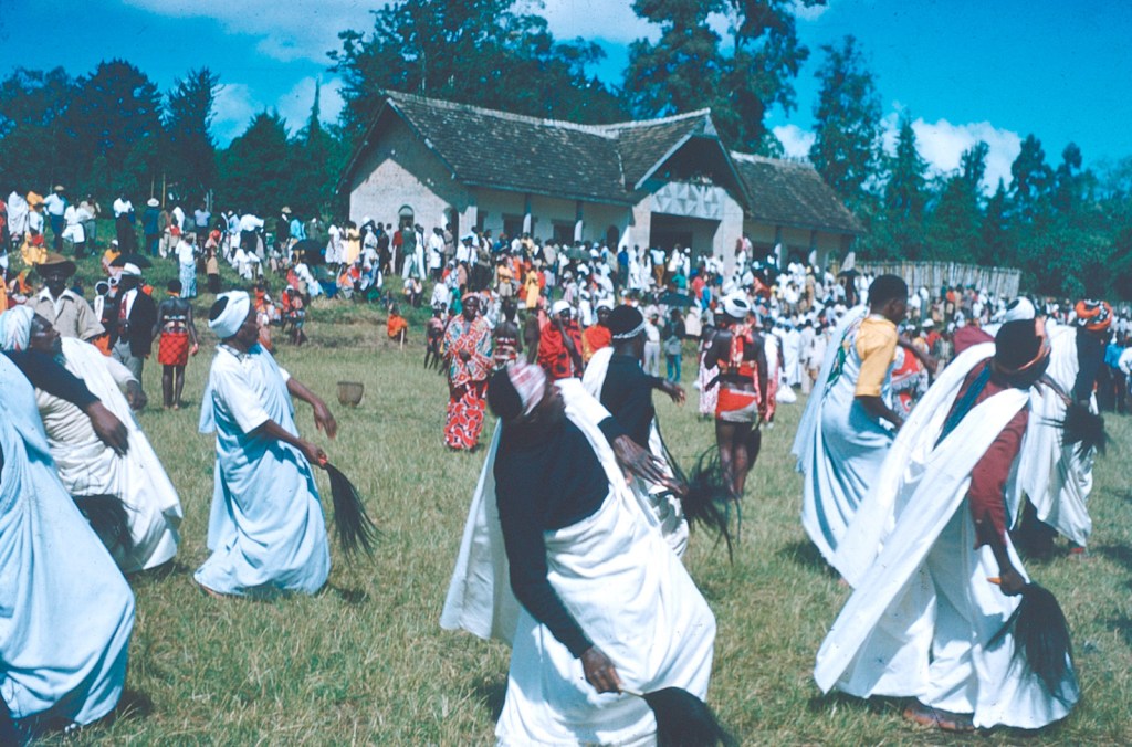 …after lunch we pushed on to place called Lupata [see above]; we had to drive up a breach in the hills which turns out to be an ancient lava stream from the last ancient volcano, Chejo, which is nearby. When we arrived we found the people whose appeals Tom had come to hear had gone home; there having been some sort of misunderstanding. However we attended a very lively ‘wake’ where there was dancing and drinking and much merriment. I think I shook hands with every old crone in the village – they seldom see Europeans…